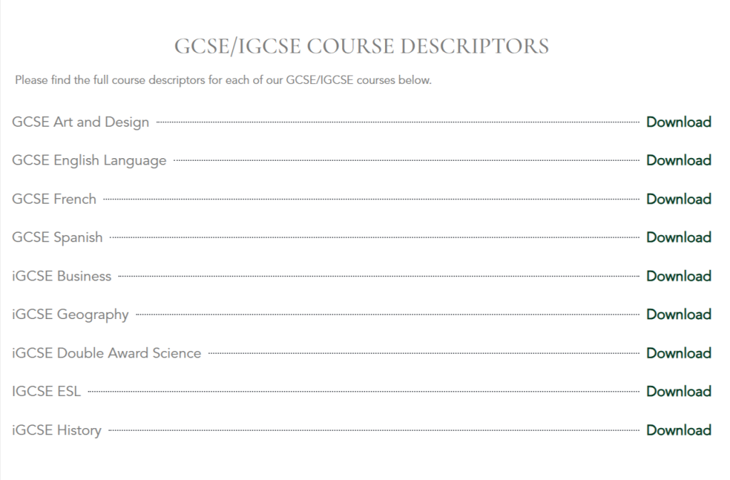 GCSE Course descriptors