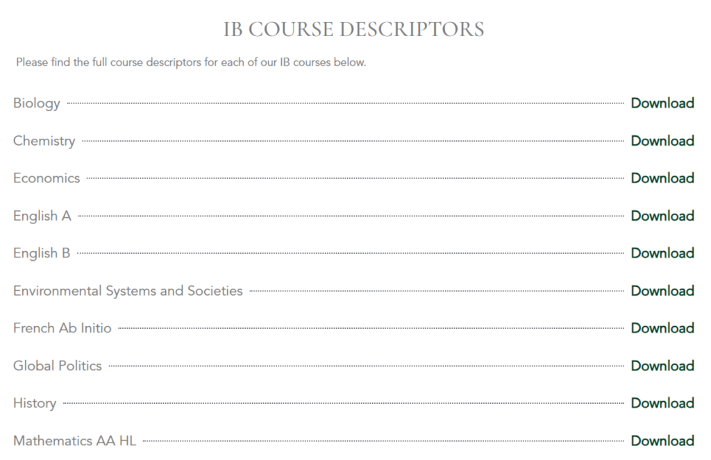 IB Course descriptors